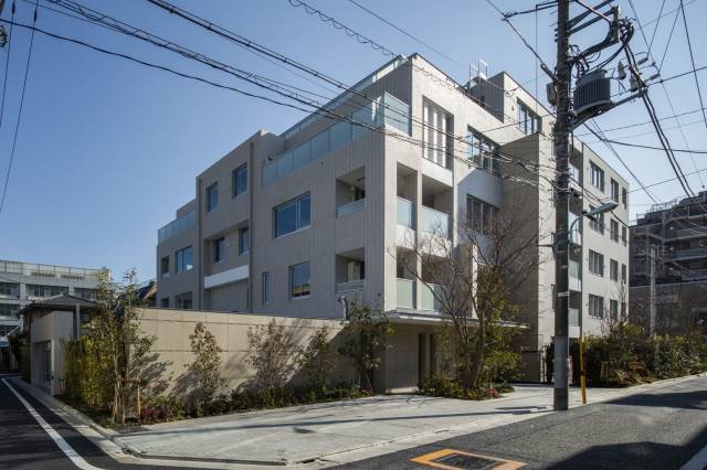 駅徒歩3分/4方角という希少立地の29邸。二層吹き抜けの堂々たるエントランス、既存樹の桜を残したシンボルツリーなど、洗練と風格の駒場の邸。