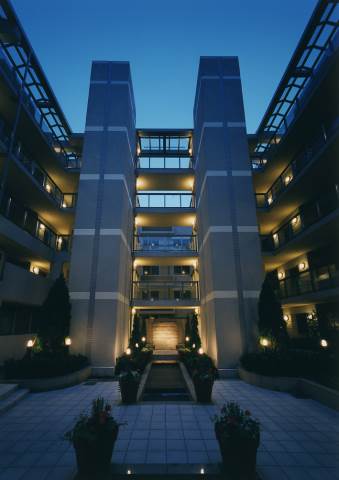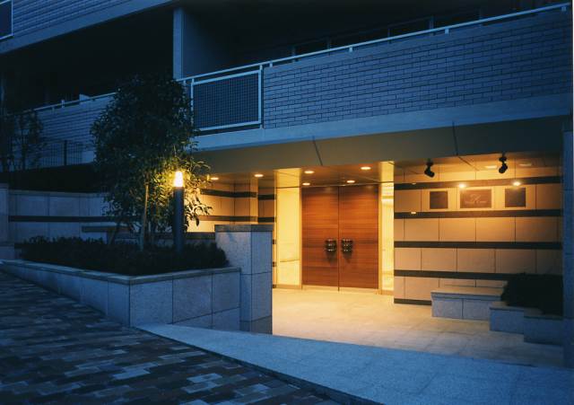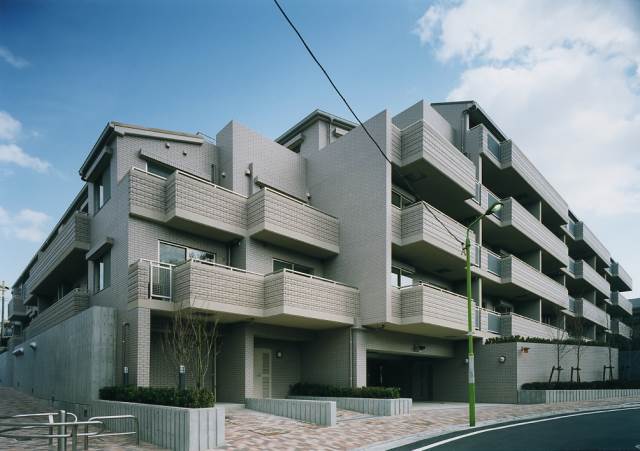 東急東横線「祐天寺」駅徒歩5分。目黒区五本木アドレスの第一種低層住居専用地域に佇む全63邸の低層邸宅。