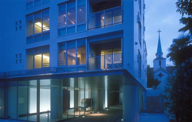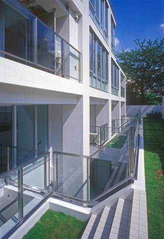 白を基調としたタイルとガラスのコントラストが美しい全32邸のデザインレジデンス。