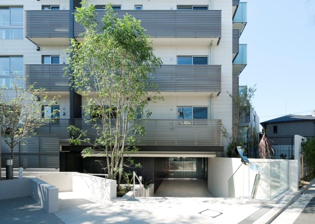穏やかな住宅地の一角に佇む、爽やかな白と黒のストライプが印象的な31邸のデザインレジデンス。