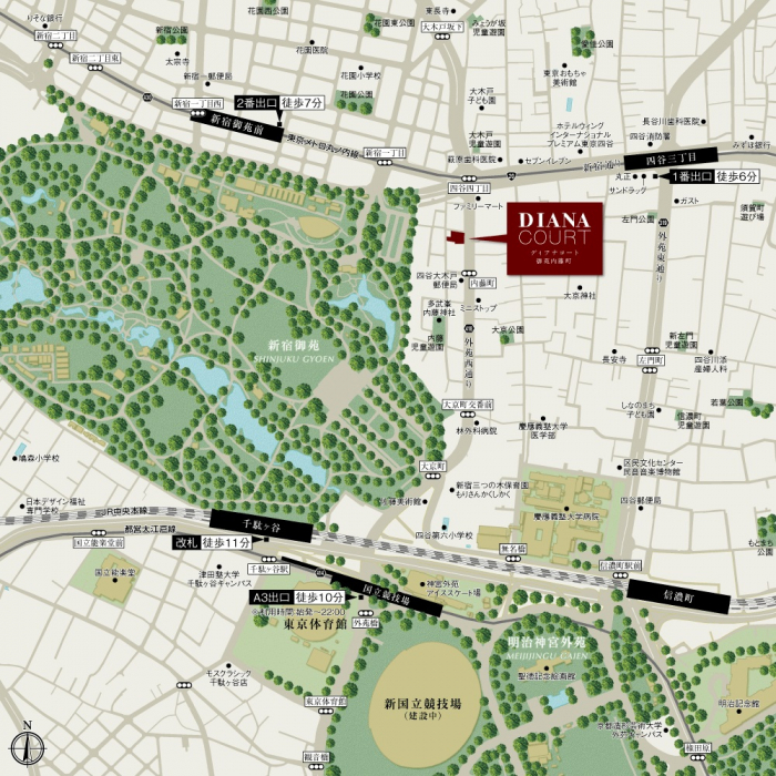 | 交通 | 東京メトロ丸ノ内線 四谷三丁目 徒歩6分 都営大江戸線 国立競技場 徒歩10分 JR中央本線 千駄ヶ谷 徒歩11分 |