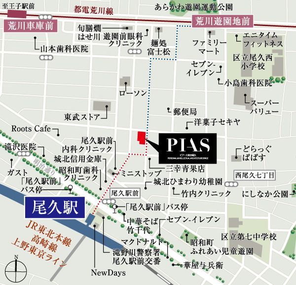 | 交通 | JR高崎線 尾久 徒歩3分 都電荒川線 荒川遊園地前 徒歩5分 |