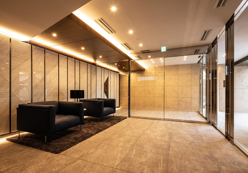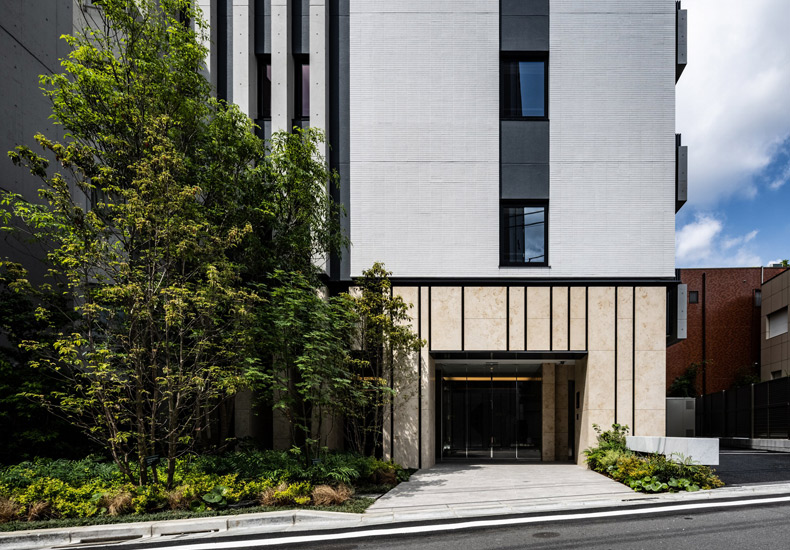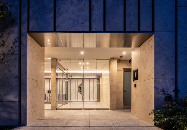 2022年竣工、邸宅地「山王3丁目」に佇むデザインレジデンス。「大森」駅 徒歩6分。商店街を通る安心のアプローチ。