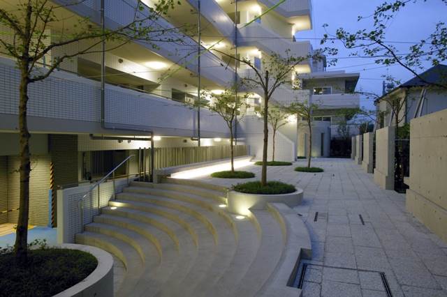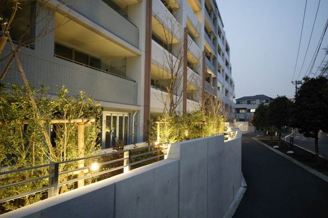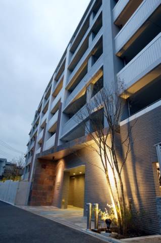 市営地下鉄ブルーライン「中川」駅徒歩9分。港北ニュータウンエリアの穏やかな住宅地に白いフォルムが印象的な55邸。